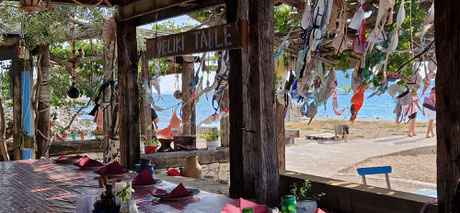 Südlich von Drage findet ihr die Konoba La Spuz (auch bekannt als Bikini Bar). Die Konoba liegt in einer einsamen Bucht, direkt am Wasser. Sie wurde aus Treibholz gebaut und jährlich erweitert. Es gibt sehr gutes Essen und es ist der perfekte Platz, um den Nachmittag in den Sundowner überleiten zu lassen. Die Konoba erreicht ihr mit dem Auto zunächst über die Magistrale in Richtung Vodice. An dem rechts abgestellten Auto mit der Aufschrift "La Spuz" geht es dann nach Rechts über einen Schotterweg. Am Ende des Wegs könnt ihr am Meer parken, um dann die letzten Meter zu Fuß zu gehen.