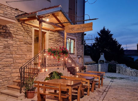 In Drage, direkt am Ortseingang mit Blick auf die Mole liegt dieses familiär betriebene Lokal, das einen guten Mix aus kroatischen und österreichischer Küche anbietet. Die Mutter des Hauses steht am Herd und für die Pizza gibt es eigens einen Pizzabäcker. Im Service wird deutsch gesprochen. Parken ist direkt am Lokal möglich.