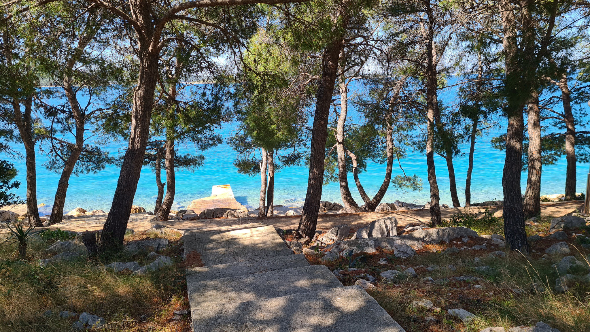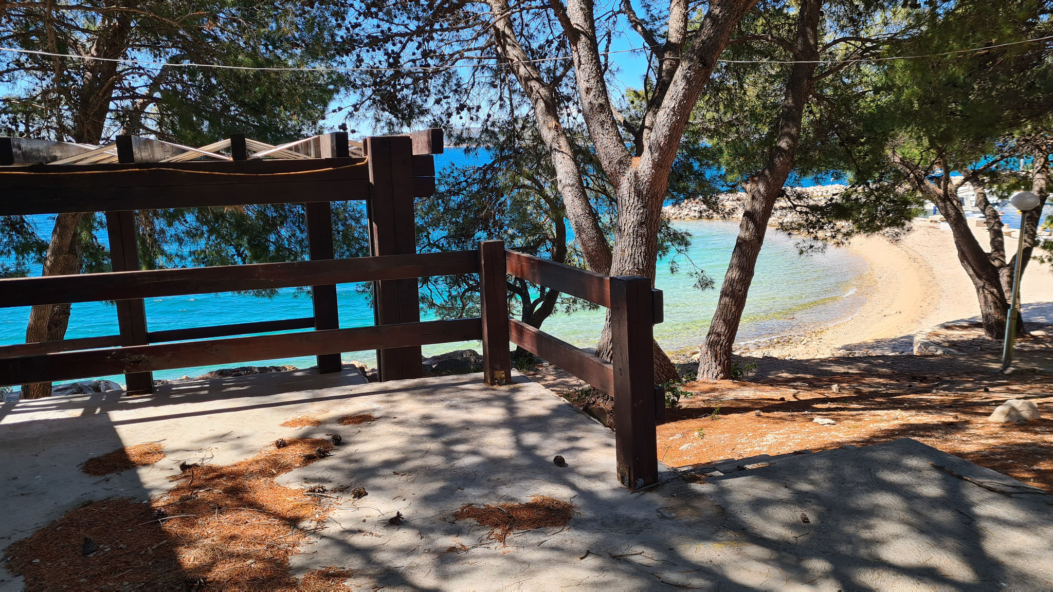 Dieser bewirtschaftete Strand befindet sich direkt unterhalb der Wohnung, gegenüber dem kleinen Hafen. Es ist ein feiner Kiesstrand der flach ins Wasser führt. Entlang des Küstenverlaufs findet man eine Vielzahl von Badeplattformen und Buchten mit schönen Einstiegsmöglichkeiten ins Wasser.